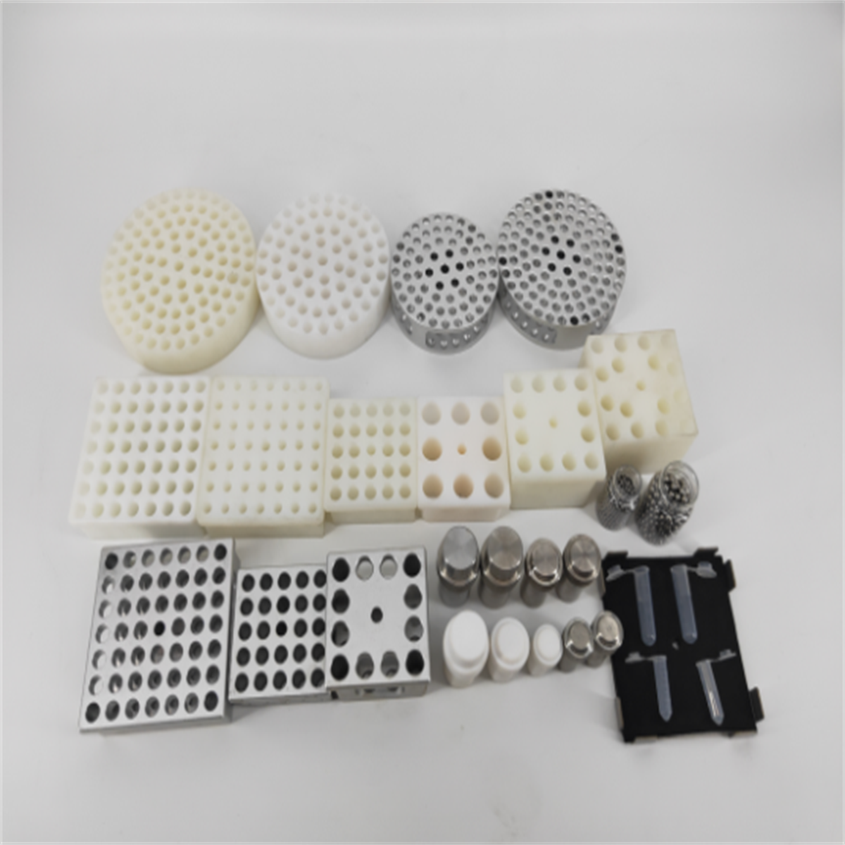 1.适配器材质:铝制,聚四氟乙烯或不锈钢,玛瑙,可适用于任何材质的样品